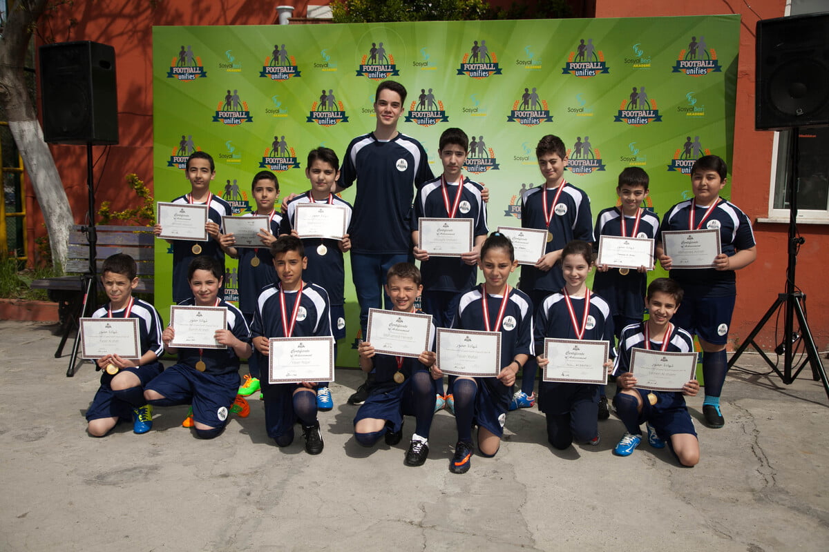 What do we do specifically to achieve this goal? Within the scope of this project, on a Saturday between 13:30 and 15:30 each month, we meet with Syrian children of ages 9 to 12 from Fatih and Başakşehir districts and bring them to the Baltalimanı astroturf football field via an arranged shuttle bus. Following some basic condition training, running, and trainings on tactics, shooting and passing, we proceed for the match. You may find some images, videos and news about our project on twitter.com/footballunifies and instagram.com/footballunifies. The first period of the project started in September 2016 ended on April 22, 2017, one day before the Children's Day that has been celebrated traditionally since 1923. After the final match in Baltalimanı Football Field, our children received their medals, certificates, football kits and their professional football shoes provided by our sponsors during a beautiful ceremony which also hosted their parents. I believe that this experience will instill hope in the children and arouse a feeling of "I can do it!".